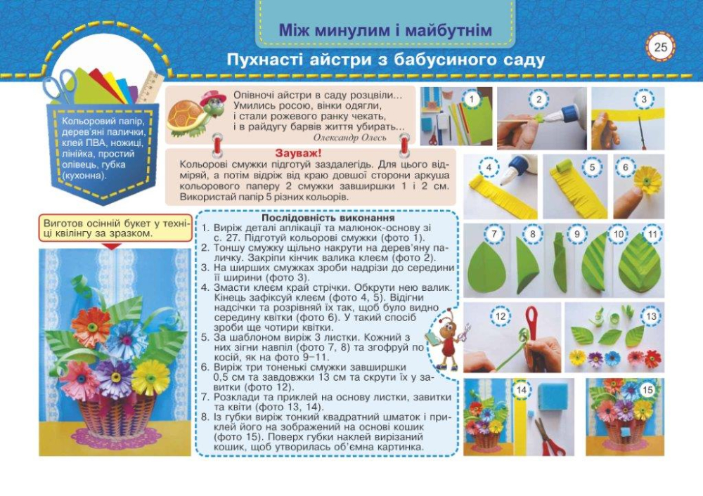 В альбомі-посібнику запропоновано творчі завдання з дизайну та технологій, розроблені відповідно до Типових освітніх програм МОН України (О. Савченко та Р. Шияна) для 3 класу, спрямовані на розвиток універсальних творчих якостей та сенсорних здібностей учнів.
