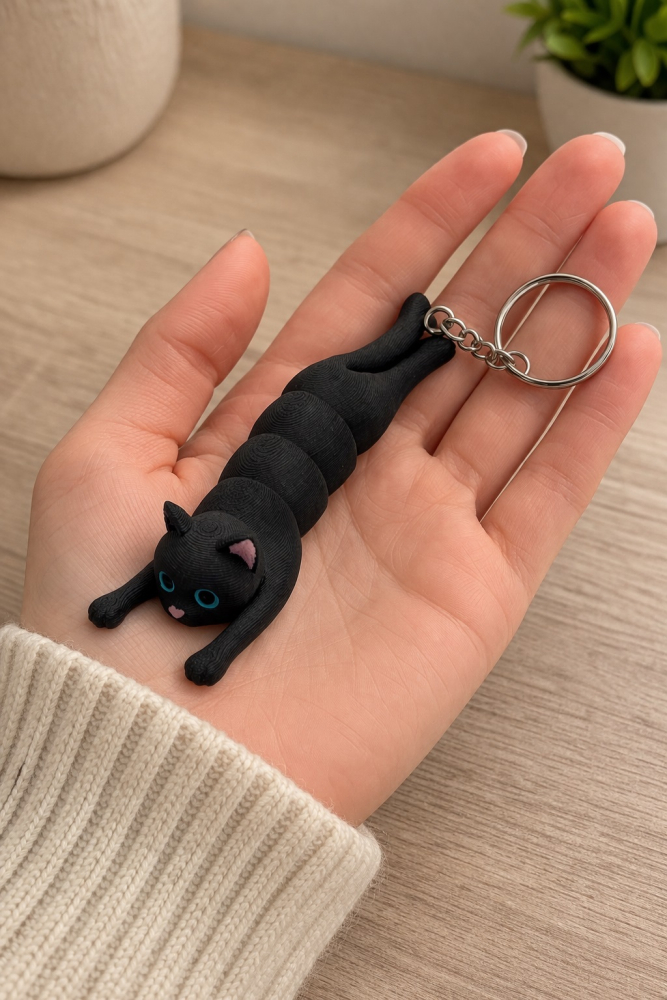 Брелок антистрес FlexiCat — це стильний та функціональний аксесуар, який поєднує в собі естетику декоративної фігурки та користь заспокійливої іграшки. Завдяки особливій шарнірній конструкції, цей котик має дивовижну рухливість, що дозволяє йому плавно змінювати положення та імітувати грацію справжньої тварини.