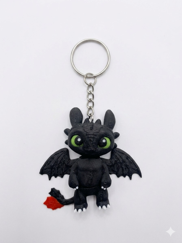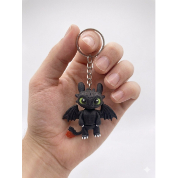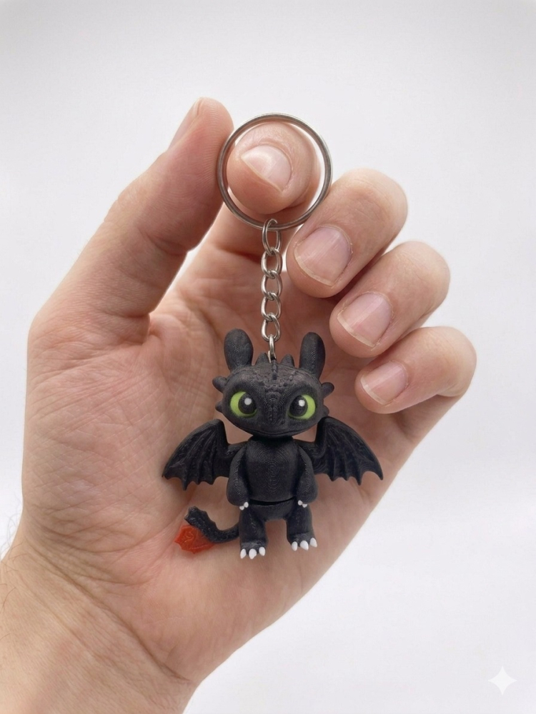 Брелок Нічний Дракончик — це втілення магії та сучасних технологій у ваших руках. Виготовлений як деталізований аксесуар 3Д друк з пластику, він вражає своєю матовою текстурою та виразними зеленими очима. Цей чорний дракон стане ідеальним супутником для тих, хто захоплюється фентезі та шукає незвичайні речі для прикрашання своїх повсякденних предметів.