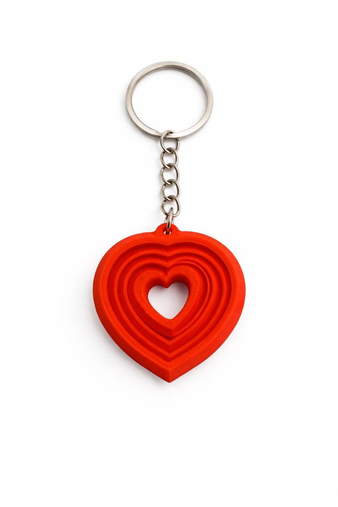 Багатошарова форма серця створює об’ємний та виразний вигляд. Такий дизайн виглядає сучасно, приваблює увагу та виділяється серед класичних аксесуарів. Брелок приємний на дотик і гармонійно доповнює повсякденні речі.