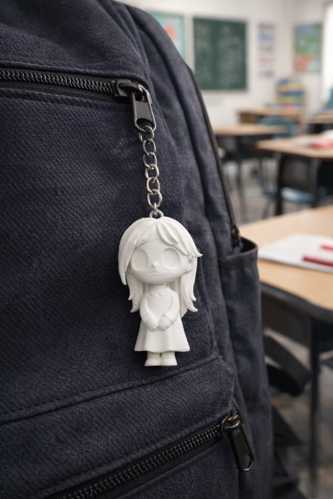 Брелок «Світла дівчинка» — це естетичний аксесуар для ключів, рюкзака або сумки, надрукований на 3D-принтері з якісного пластику. Його образ передає відчуття спокою, світла та внутрішньої гармонії.