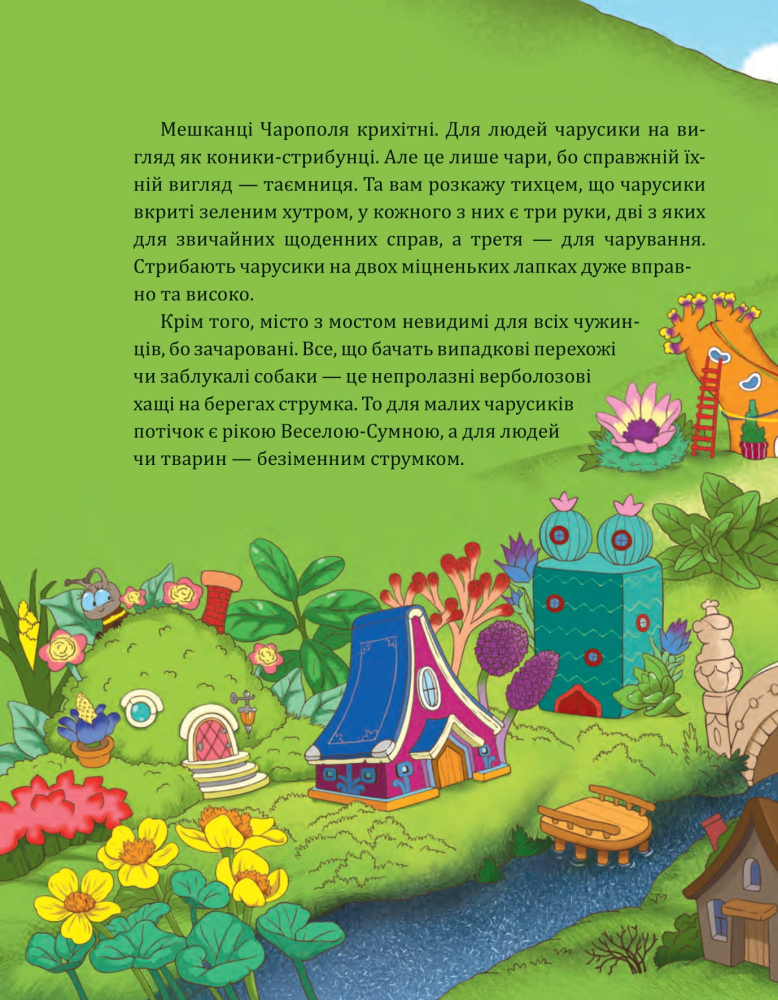 У центрі історії — чарівні створіння чарусики, які живуть поруч із людьми, але залишаються непомітними для більшості. Вони мають власні турботи, радощі та випробування, вчаться долати труднощі, приймати рішення й допомагати одне одному. Казкова повість розповідає про відповідальність, сміливість і віру в добро.