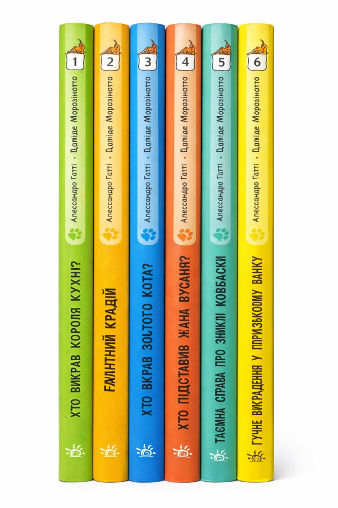 Запрошуємо юних шукачів пригод поринути у вир таємниць разом із комплектом книг Детективи з вусами 1-6 книг відомого італійського письменника Алессандро Ґатті та його співавторів Давіде Морозінотто і Стефано Турконі.