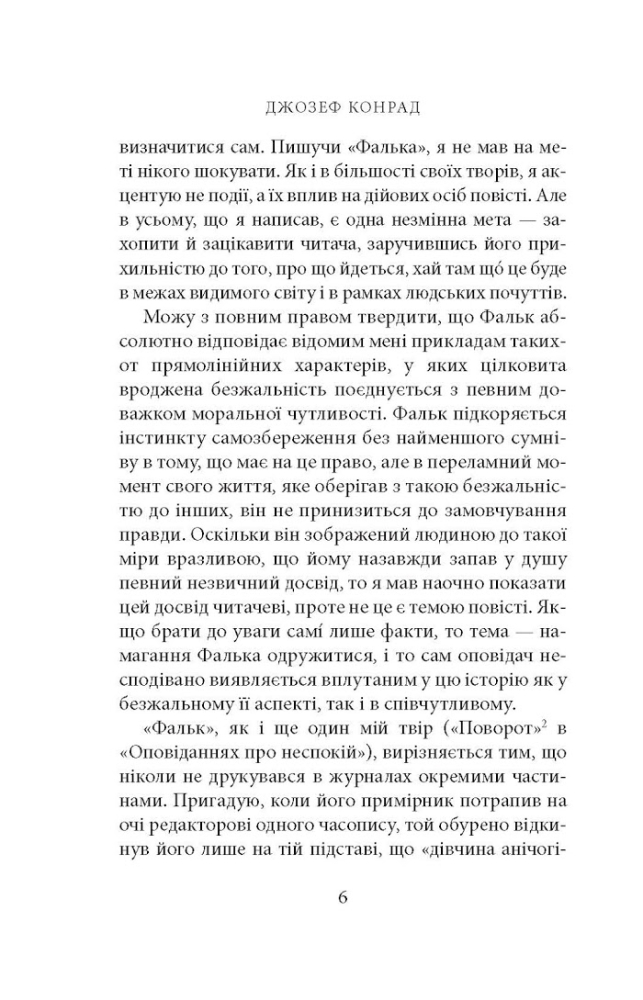До вашої уваги — видання, яке містить три знакові твори класика світової літератури. Збірка «Фальк. Емі Фостер. Завтра» Джозефа Конрада об'єднує повісті та оповідання, написані на початку ХХ століття, що вражають своїм психологізмом та глибиною. Це не просто художня література, а справжнє дослідження людської природи, де автор, народжений в Україні, осмислює універсальні теми, які залишаються актуальними й сьогодні.