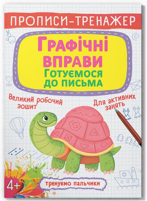 Графічні вправи. Готуємося до письма. Прописи-тренажер підходить для дітей 4–6 років, які готуються до школи. Його можна використовувати вдома, у дитячому садку або навчальному центрі. Зошит стане чудовим помічником для розвитку дрібної моторики, просторового мислення та підготовки руки до письма. Батькам він допоможе організувати цікаві заняття без перевантаження.