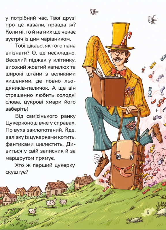 Цукерки від Цукерконоша – це яскрава та добра дитяча книга від Сапена Анна, яка переносить читачів у світ солодких пригод та справжніх чудес. Маленькі герої знайомляться з дивовижним персонажем – Цукерконошем, який здатний здійснити найсолодші мрії. Але що станеться, якщо бажання виходять за межі звичайного?