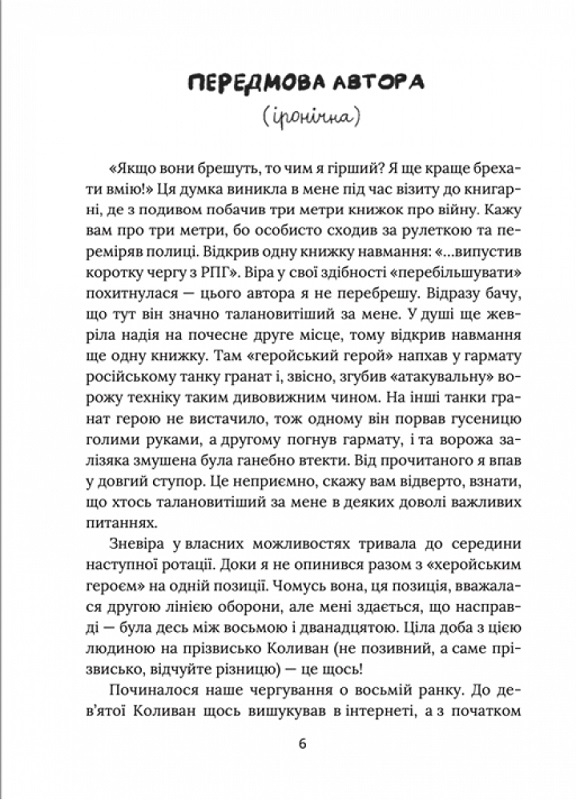 Ця книга – чесна, гостра та правдива. Вона покаже війну такою, якою вона є, без цензури та пафосу. Це історія про людей, їхні страхи, силу духу та вибір між добром і злом.