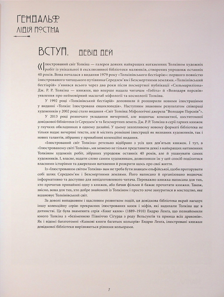 Це ілюстрований путівник, що систематизує легенди, народи, створіння та ключові події всесвіту Толкіна. Видання допомагає глибше зрозуміти міфологію Середзем’я, структуру його світу та зв’язки між персонажами. Книга охоплює події, описані у відомих творах, і розкриває їх у ширшому контексті.