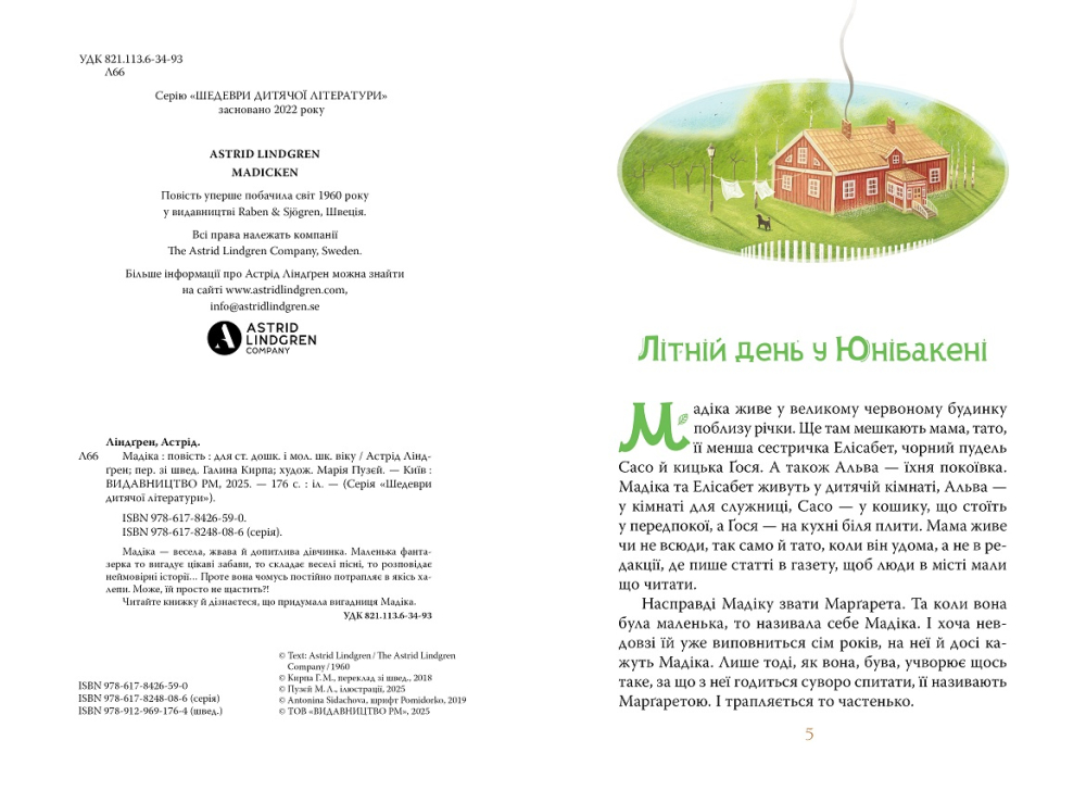 Книга Мадіка розповідає про дівчинку, яка живе у шведському містечку Юнсівалля. Її життя сповнене пригод: купання в річці, свята з друзями, дитячі суперечки і великі мрії. Астрід Ліндґрен чудово передає атмосферу дитинства – коли світ здається безмежним і кожен день сповнений радості. У книзі поєднані гумор, теплота й виховні мотиви, що робить її близькою кожній дитині. Це історія про родинну любов, підтримку і безтурботні дні, які залишаються у пам’яті назавжди.