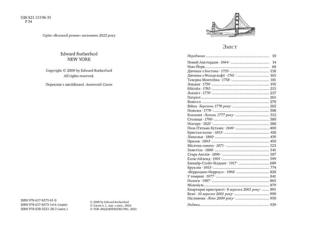 Нью-Йорк – масштабний історичний роман британського письменника Едварда Резерфорда, який охоплює понад 400 років історії одного з найвідоміших міст світу. Через долі кількох сімей автор майстерно показує трансформацію Нью-Йорка від невеликого поселення до сучасного мегаполісу.