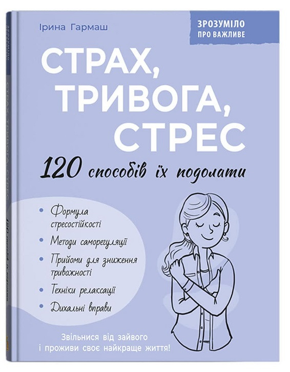 Страх, тривога, стрес. 120 способів їх подолати — це практичний посібник, який допомагає впоратися з емоційною напругою, внутрішнім неспокоєм і перевантаженням. Авторка Ірина Гармаш пропонує зрозумілі інструменти для щоденної роботи із власним психоемоційним станом.
