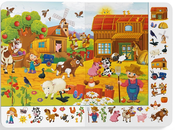 Великий віммельбух. Ферма — це чудова дитяча книга, яка переносить малюків у світ природи та сільського життя. На сторінках книги можна побачити, як доглядають тварин, збирають урожай, доять корів, годують курей і лагодять техніку.