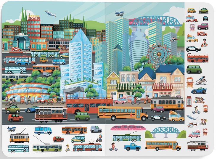 Транспорт. Великий віммельбух створено для дітей віком від 2 до 6 років. Вона стане улюбленою книжкою для спільного читання з батьками, а також чудовим матеріалом для занять у дитячому садочку. Це ідеальний варіант для малюків, які цікавляться машинами, літаками й потягами.