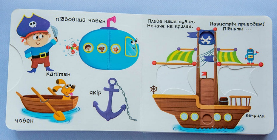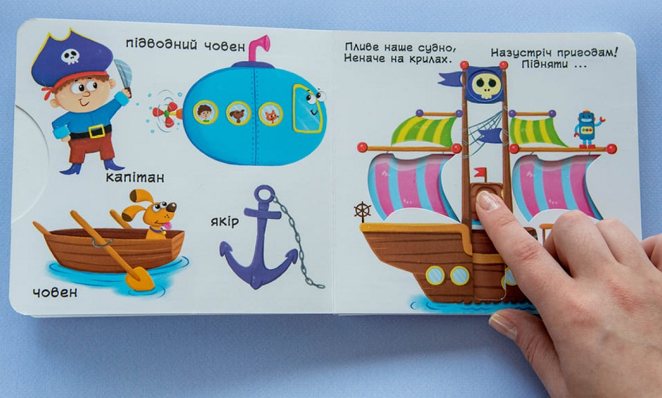Їдемо, летимо, пливемо. Перша книжка з рухомими елементами підходить дітям від 1 до 4 років. Вона стане чудовим способом познайомити малюка з транспортом, пояснити, як люди подорожують та як працюють різні машини. Книга ідеальна для спільного читання з батьками та веселих ігор.