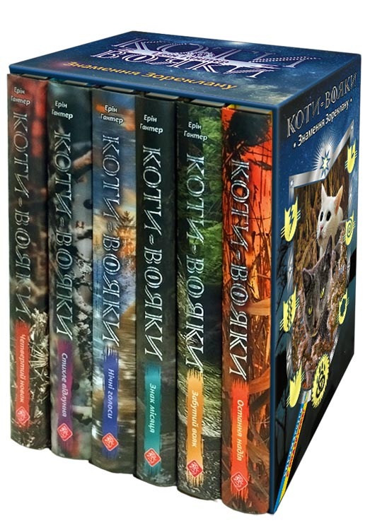 Коти-вояки. Подарунковий комплект із 6 книг 4 циклу серії об’єднує повну історію одного з найважливіших етапів розвитку легендарного світу Кланів. У цьому циклі коти-воїни стикаються з новими пророцтвами, внутрішніми конфліктами та загрозами, які ставлять під сумнів усталені закони. Події розгортаються напружено й динамічно, змушуючи героїв робити складний вибір між вірністю Клану та власними переконаннями. Серія глибше розкриває характери персонажів, показує ціну лідерства й відповідальності та демонструє, як минулі рішення впливають на майбутнє всіх племен. Автори поєднують дитячу фантастику з елементами епічного пригодницького фентезі для підлітків, створюючи масштабну й емоційно насичену історію. Коти-вояки. Подарунковий комплект із 6 книг 4 циклу серії стане ідеальним вибором для читачів, які прагнуть прочитати цикл повністю та глибше зануритися у світ котів-воїнів.