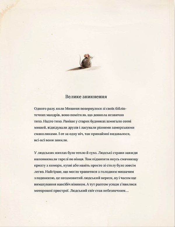 Воно обожнювало читати людські книжки, мріяло про незвідане і мало багато друзів. Але одного дня всі миші зникли з міста…