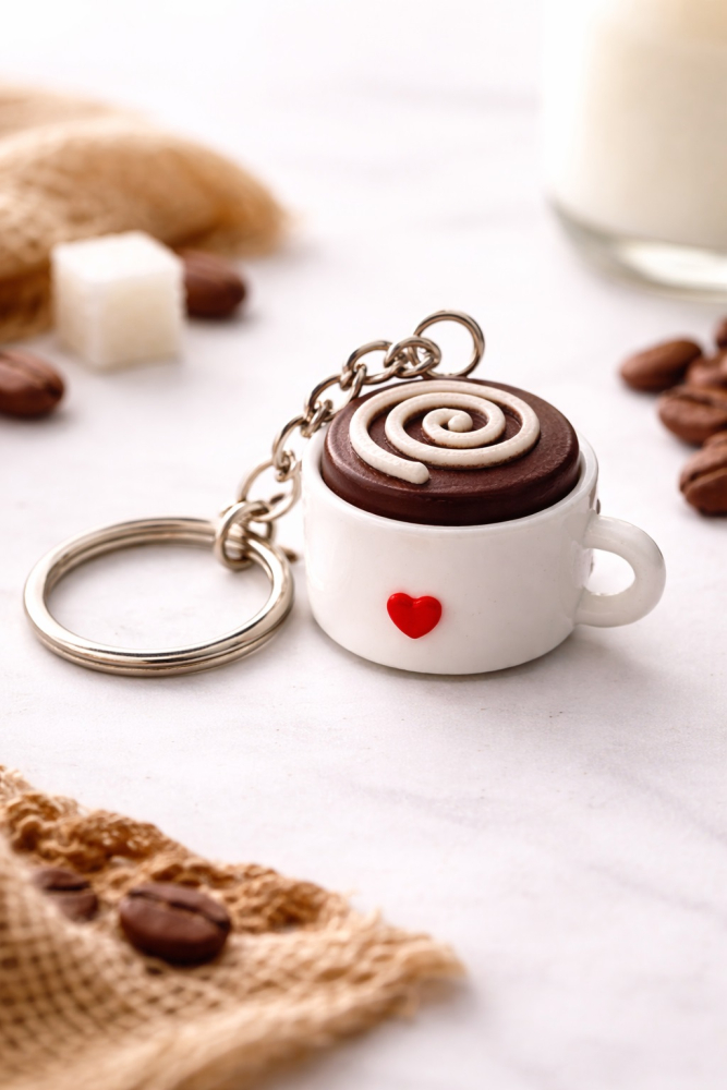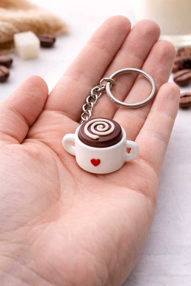 Брелок антистресс «Coffee Swirl» — это компактный аксессуар в виде чашки кофе с характерным спиральным узором сверху. Он сочетает уютный кофейный дизайн и практичную антистресс-функцию.