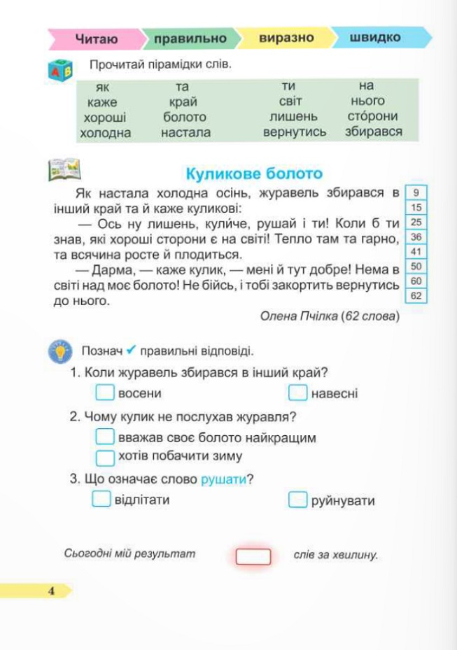 Швидкочитайлик 2 клас. Тренувальник — чудовий інструмент для формування навички швидкого та правильного читання.