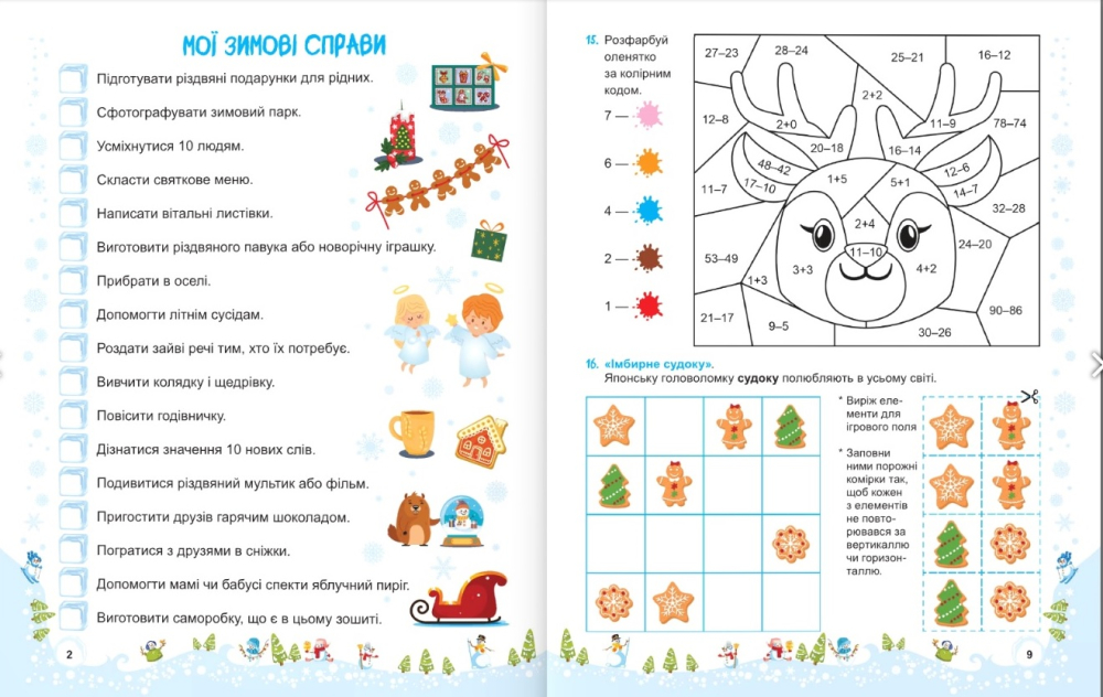 Сніговичок. Зимові канікули. 2 клас – навчально-розвивальний зошит авторки Роговської Л., створений спеціально для другокласників. Це чудовий спосіб провести канікули цікаво й пізнавально.