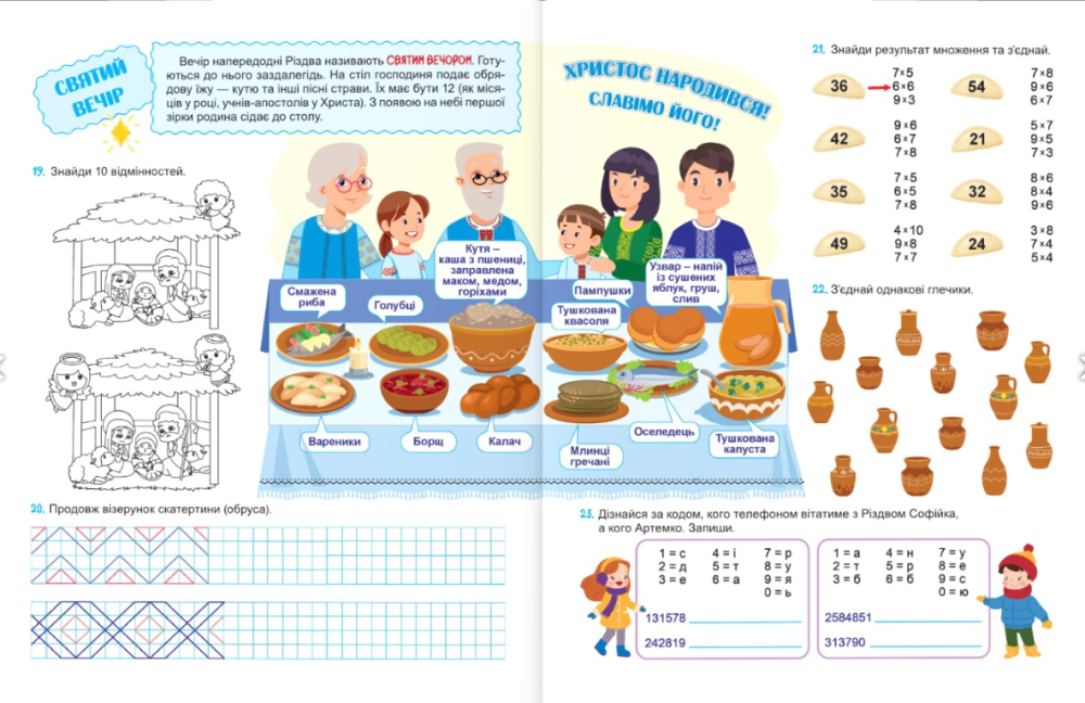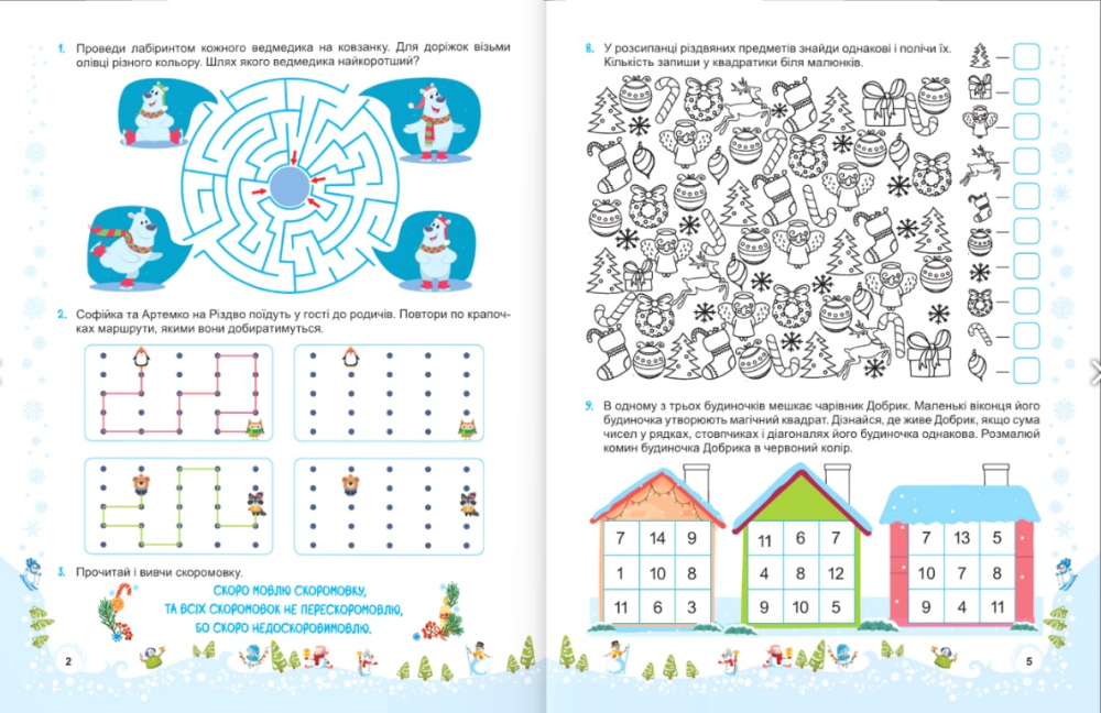 У зошиті Сніговичок. Зимові канікули. 3 клас діти разом із головним героєм – веселим Сніговичком – подорожують сторінками зимової казки. На кожному етапі їх чекають різноманітні завдання: читання коротких текстів, вправи з граматики, логічні задачі, математичні приклади та завдання на увагу. Кожен розділ має власну тему: «Мовні сніжинки», «Математичні ігри», «Казкові задачі». Посібник оформлений яскравими ілюстраціями, які мотивують дітей працювати із задоволенням. Зошит допомагає розвинути мислення, логіку, мовлення та впевненість у власних силах.
