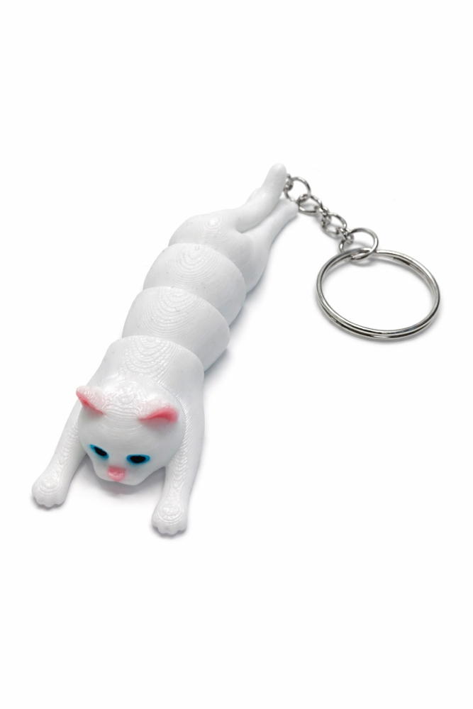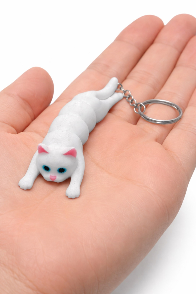 Тягучий котик брелок-антистрес — це сучасний аксесуар, створений за допомогою технології 3D-друку. Завдяки особливій шарнірній конструкції, фігурка має високу рухливість, що дозволяє їй імітувати грацію справжньої тварини. Виготовлений із міцного та екологічного пластику, цей брелок стане надійним супутником у вашому щоденному житті.