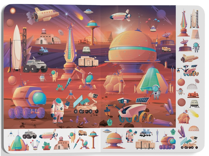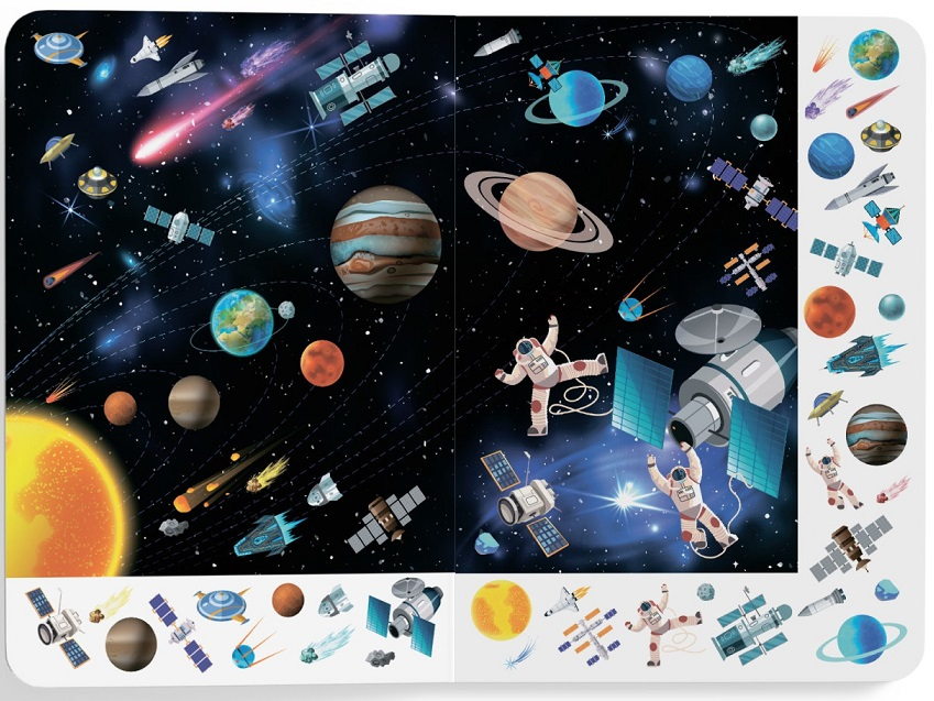 віммельбух космос, дитяча книга про космос, книги для дітей 3+, книга картинки, космос для малят, віммельбух купити, навчальна книга, пізнавальна книга, книга про планети