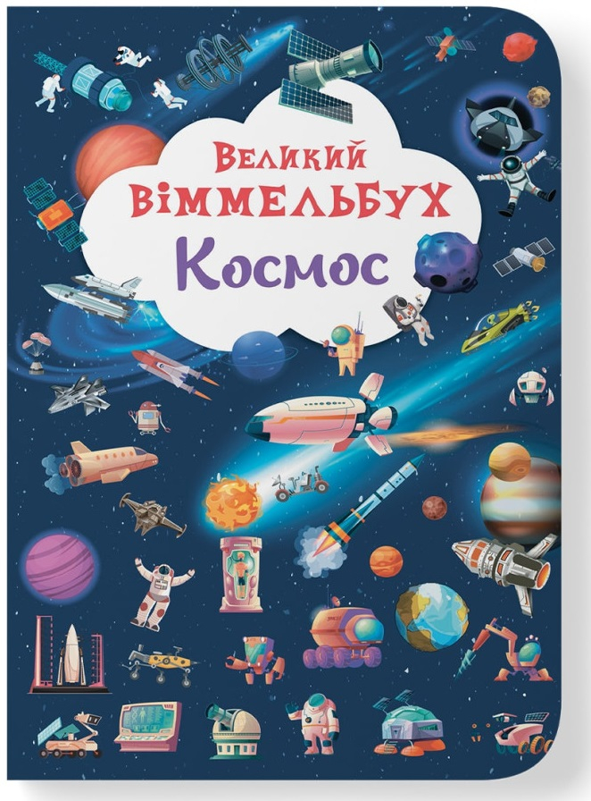 Великий віммельбух. Космос — це яскрава дитяча книга, що відкриває малюкам безмежний Всесвіт. На сторінках книги діти вирушають у подорож між планетами, знайомляться з космонавтами, ракетами, телескопами і незвичайними створіннями з інших світів.