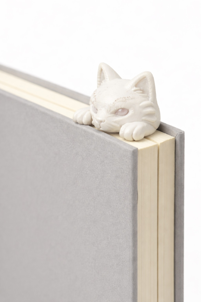 Завдяки мінімалістичному білому кольору та акуратному дизайну котика, закладка виглядає сучасно й універсально. 3D-закладка для книг має оптимальну форму, не деформується та не пошкоджує сторінки.
