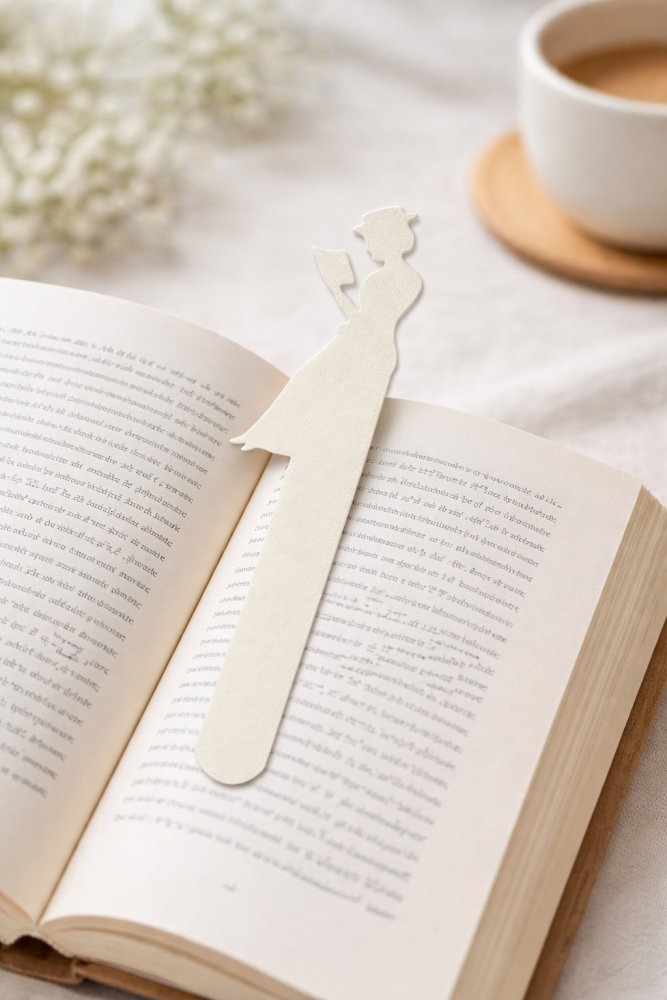 Закладка «Пані з книгою» (біла) — це естетичний аксесуар для читання, надрукований на 3D-принтері з якісного пластику. Витончений силует жінки з книгою символізує спокій, зосередженість та любов до літератури.