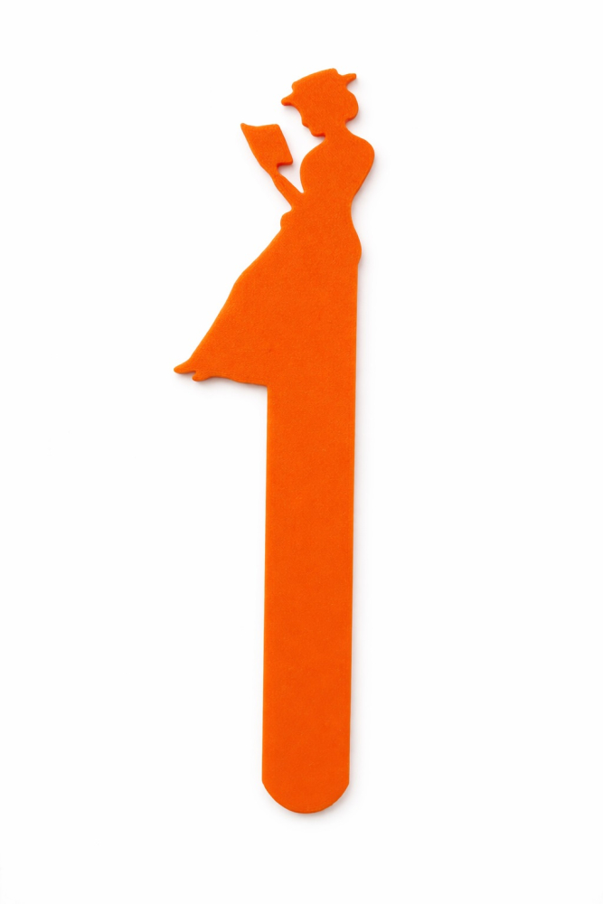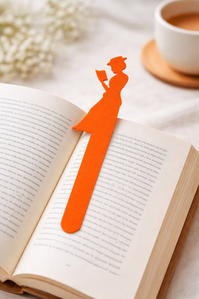 Насичений помаранчевий колір робить закладку добре помітною між сторінками та додає позитивних емоцій під час читання. Силует літературної леді асоціюється з вдумливістю, спокоєм і любов’ю до книг, перетворюючи простий аксесуар на елемент стилю.