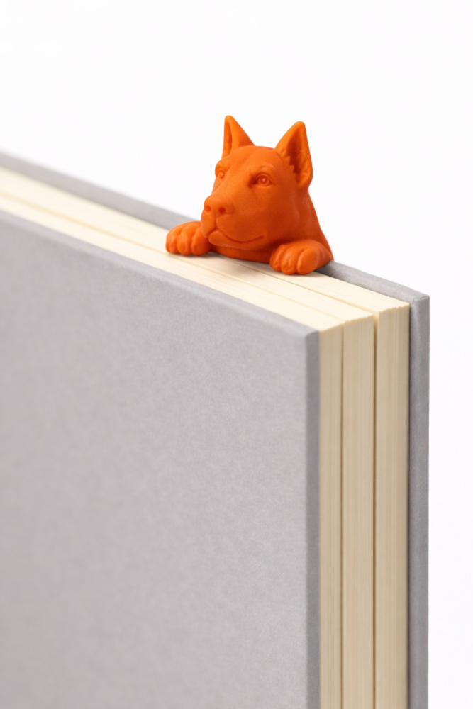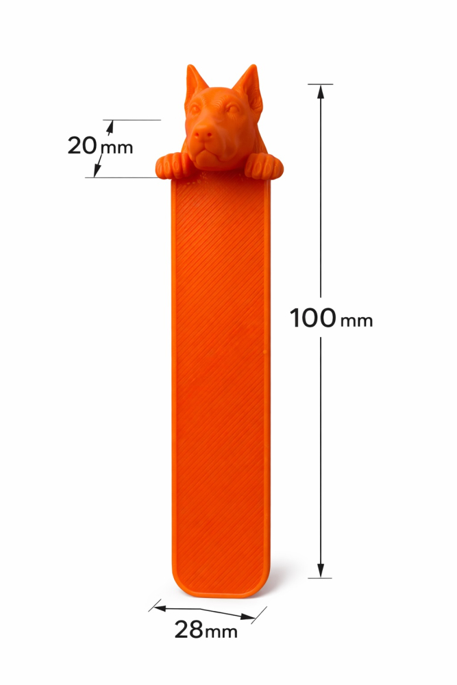Помаранчева 3D закладка «Собака» — це оригінальний аксесуар для книг, виготовлений за допомогою сучасної технології 3D-друку. Вона створена для тих, хто цінує практичність, довговічність і яскраві деталі в повсякденному читанні.